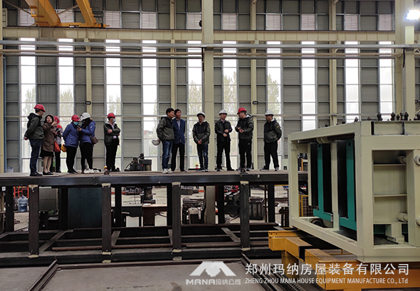 瑪納公司研制的“雙向空心復合外墻板”成組立模(子母模技術)生產線現場試驗線演示運行,各位領導共同觀看后給予了充分的肯定及認可。