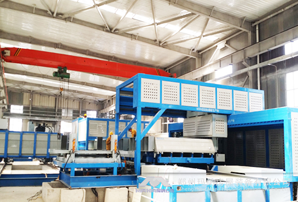 為滿(mǎn)足客戶(hù)大規(guī)模生產(chǎn)需求,瑪納公司經(jīng)過(guò)5年研究開(kāi)發(fā)專(zhuān)門(mén)針對(duì)水泥陶粒實(shí)心墻板開(kāi)發(fā)的專(zhuān)用生產(chǎn)線。主要實(shí)現(xiàn)機(jī)械半自動(dòng)化生產(chǎn),重點(diǎn)采用壓力注料、墻板封閉成型、纖維面板自動(dòng)植入及自動(dòng)出板等先進(jìn)技術(shù),實(shí)現(xiàn)該類(lèi)板材的工業(yè)化生產(chǎn)。
