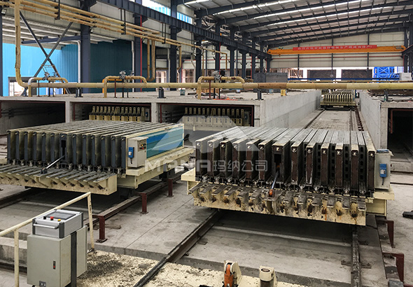 瑪納M07陶粒混凝土墻板生產線是機械化模腔成型,成度精度高,生產線年產能為50萬平方米每年。生產線由成組立模、抽芯機、布料上面成型系統、出板清模系統、行走系統、蒸壓釜等功能主機組成。