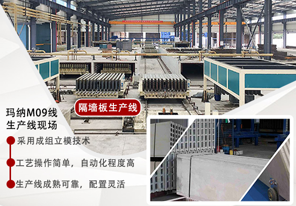 瑪納公司輕質隔墻板的加工設備采用新型綠色環保材料制作,可使用工業廢料作為生產原料,節約不可再生資源,瑪納公司輕質混凝土隔墻板設備采用立模法機組流水工藝生產,該線使用瑪納多項技術做支撐,擁有完全的自主知識產權,其設備組成主要有:成組立模、布料機、上成型機、抽芯機、開合模機、推板機、翻板機、擺渡車等,瑪納公司生產線價格數十萬到數百萬不等,具體實際產線配置及價格要依據客戶選擇而定。