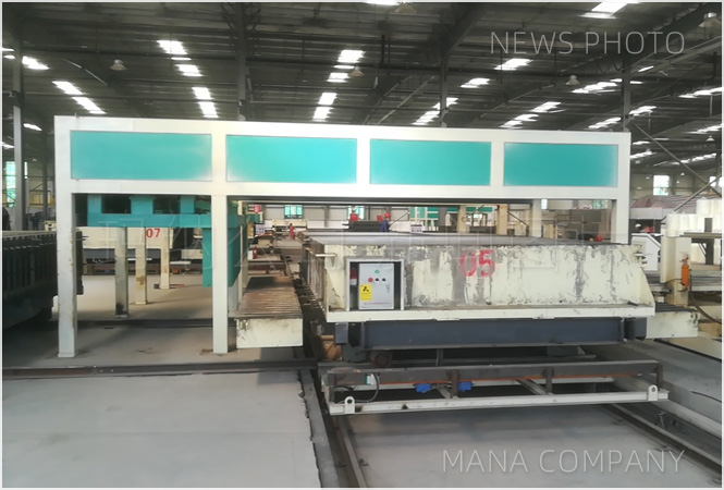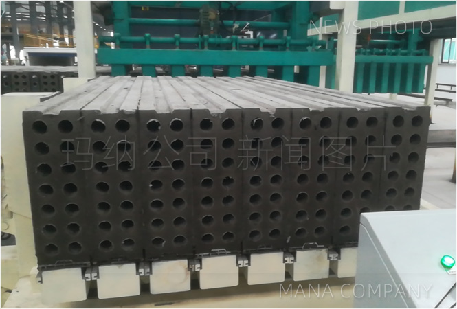 生產線整體技術采用MANA公司自主創新研制開發的新型成組立模技術裝備,系原始技術創新開發,采用立模法機組流水工藝生產,以水泥,粉煤灰等為原材料,根據該材料特性,使用瑪納多項新技術做支撐,實現模具自動開合、不漏漿,機械上面成型,自動抽芯穿芯,自動出板等工藝技術,主要滿足用戶大規劃、高品質、高度機械自動化的產品需要,是目前國內外較為成熟的成組立模法生產墻材裝備之一。