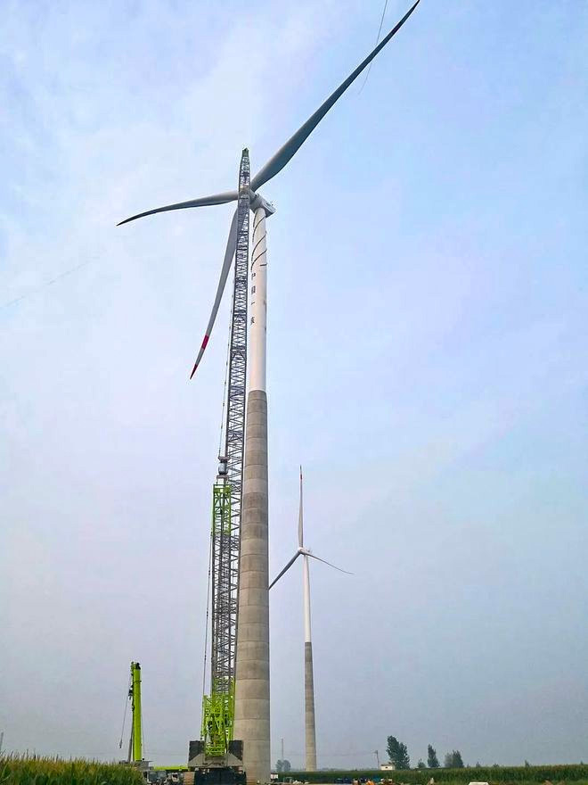 隨著風(fēng)電機(jī)組單機(jī)容量增大和塔架高度增加,混凝土塔架得到越來(lái)越多的應(yīng)用。混塔具有結(jié)構(gòu)穩(wěn)定、材料便宜、剛度大、耐久性好、環(huán)境適應(yīng)性強(qiáng)等優(yōu)點(diǎn),適用于高塔項(xiàng)目。