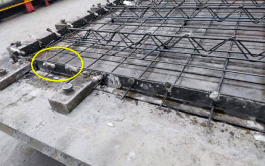 混凝土澆筑完成后,回收封堵側模用的PE棒,進行混凝土收面。