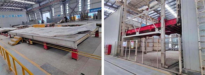 拉毛完成后,對混凝土面進行覆膜,進入蒸汽養(yǎng)護窯養(yǎng)護。