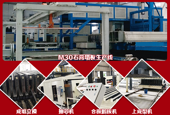 M30石膏墻板生產線:成組立模,抽芯機,合板翻板機,上成型機